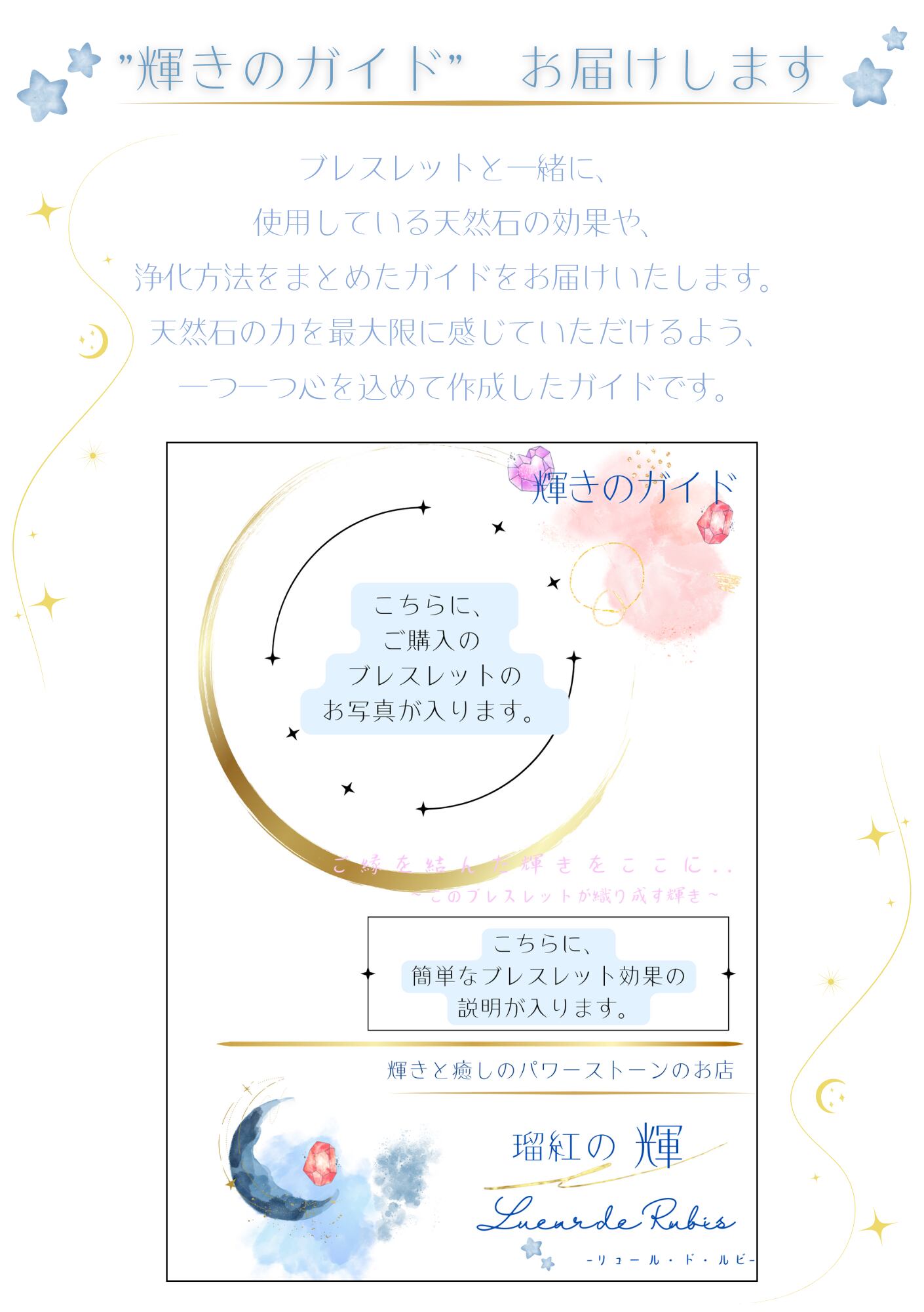 【輝きのガイドについて】ご購入のブレスレットの効果や浄化方法を載せた「輝きのガイド」をお付けします。