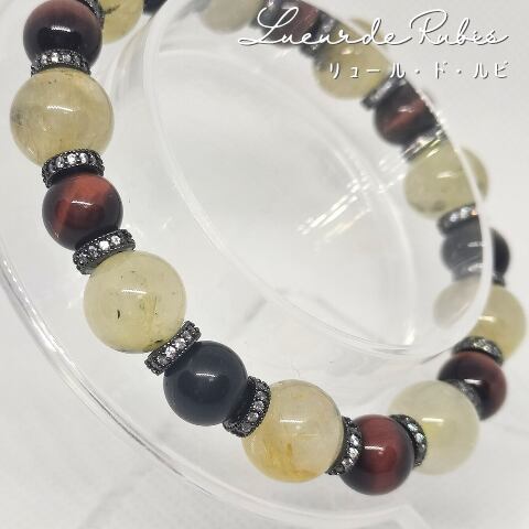 ゴールドルチルクォーツに、てりの強い深みあるレッドタイガーアイを組み合わせた、凛とした存在感のある一本です。