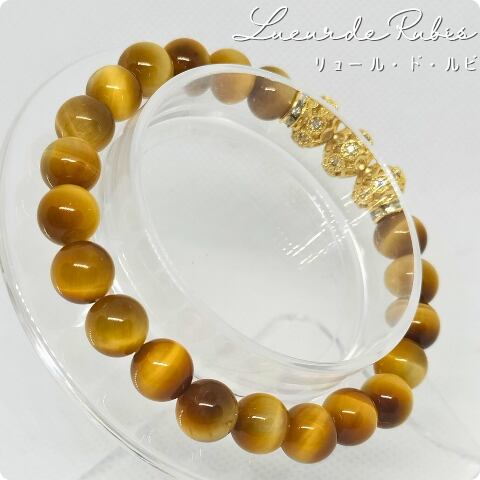 このブレスレットは、古代より王族や成功者に愛されてきた強いエネルギーを放ちます。停滞した状況を力強く動かし、あなたの人生に新しい富の流れを作り出します。持ち主の洞察力や判断力を鋭敏にし、ビジネスチャンスを逃さず掴む能力をサポートします。また、強い光のエネルギーがネガティブな感情や迷いを払いのけ、目標達成に必要な不屈の精神と圧倒的な実行力を養います。身に着けることで、虎の目のように真実を見抜く力が宿り、あなたを勝利へと導きます。